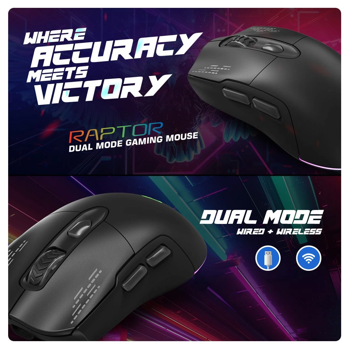 Cosmic Byte Raptor Dual Mode Wireless + Wired Gaming Mouse-Black